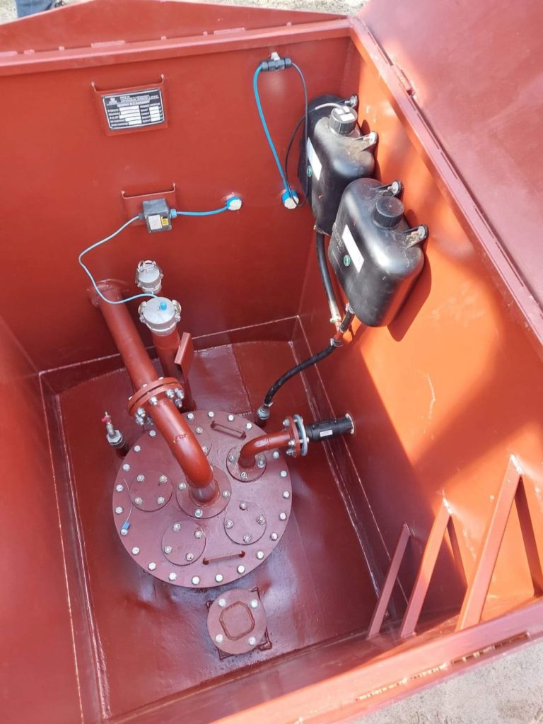 szczelne stalowe studzienki nazbiornikowe, króćce ssące do poboru produktu ze zbiornika przez cysternę, itp.